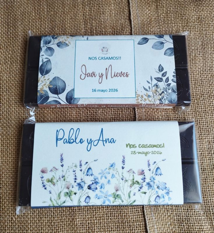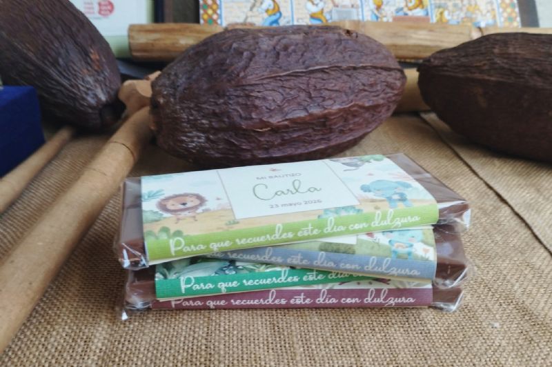 Nuestro mejor chocolate bio, vestido para tu bautizo, comunión, boda... Lo puedes personalizar.